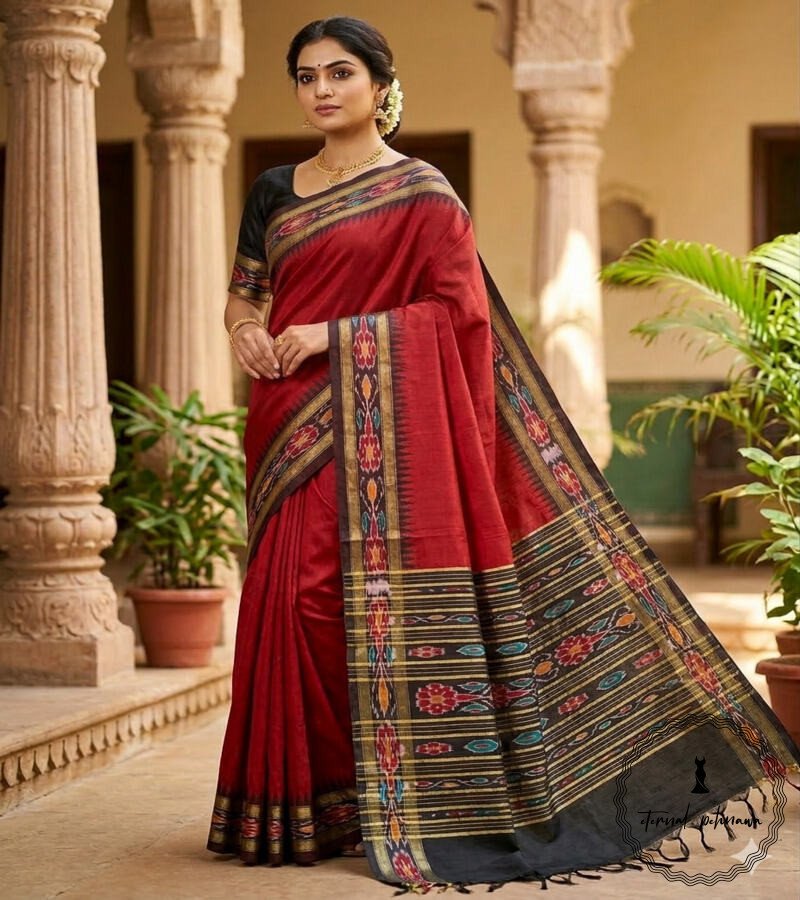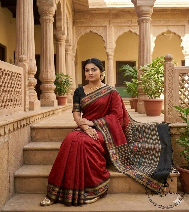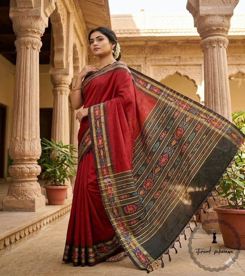 We are introducing the timeless allure of our semi-raw silk sarees, directly handwoven from the heart of Chhattisgarh. Beautiful intricate temple borders with mesmerising Ikkat pallus is a masterpiece of traditional handloom weaving.