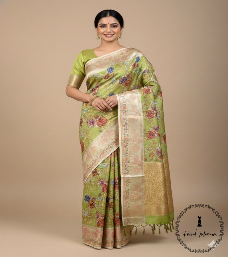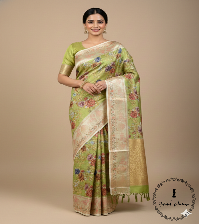 Tussar Silk Saree with Elegant Floral Design